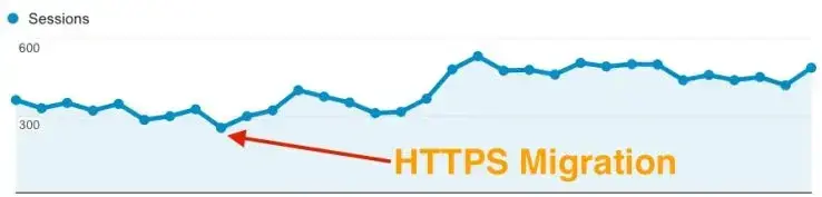 Instead of a decline as expected, traffic actually saw a boost after the migration. Mind. Blown. This could possibly be from the small boost that Google gives HTTPS sites, though we can’t be certain.