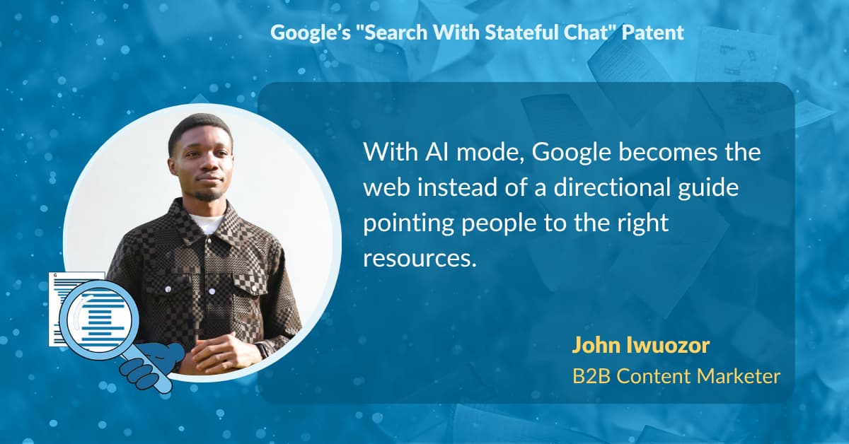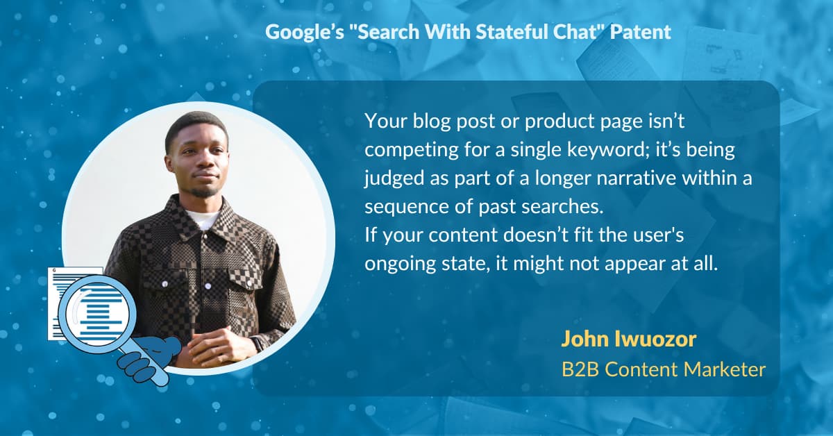 In August 2024, Google published a patent titled "Search With Stateful Chat." The patent outlines Google’s plans to bake conversational memory into search. Michael King, founder of iPullRank, was one of the first to spotlight this patent with a technical breakdown that got the industry buzzing.
