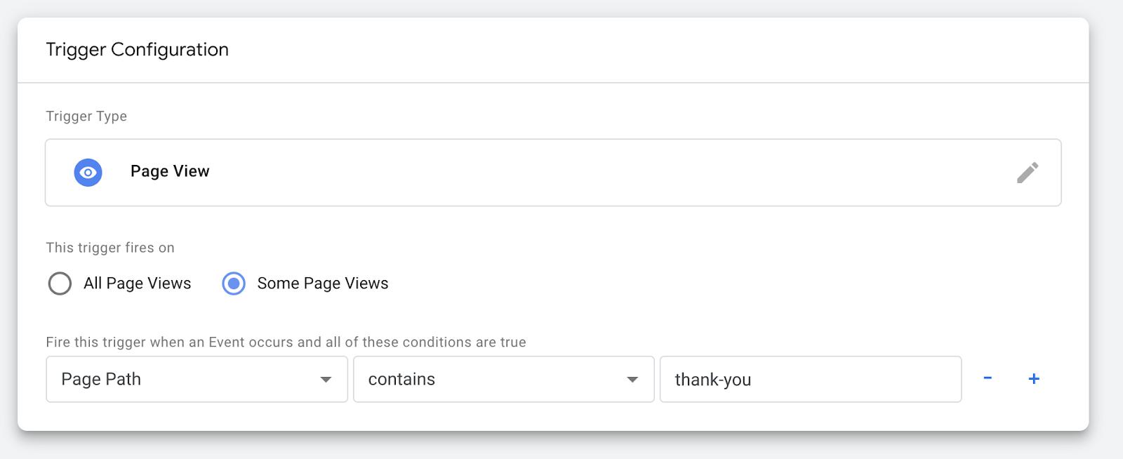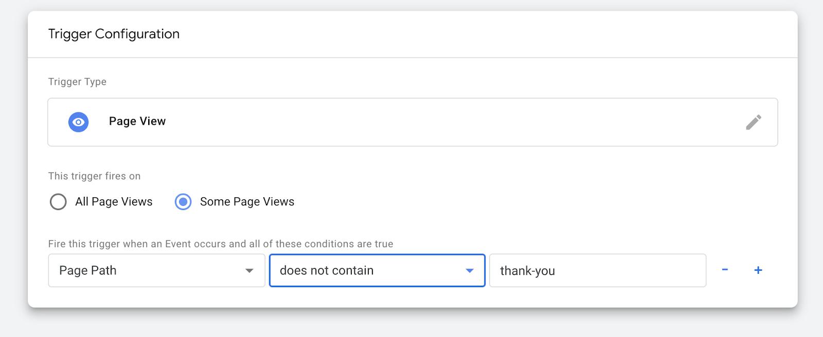 Imagine that your trigger was previously firing on every thank-you page visit: