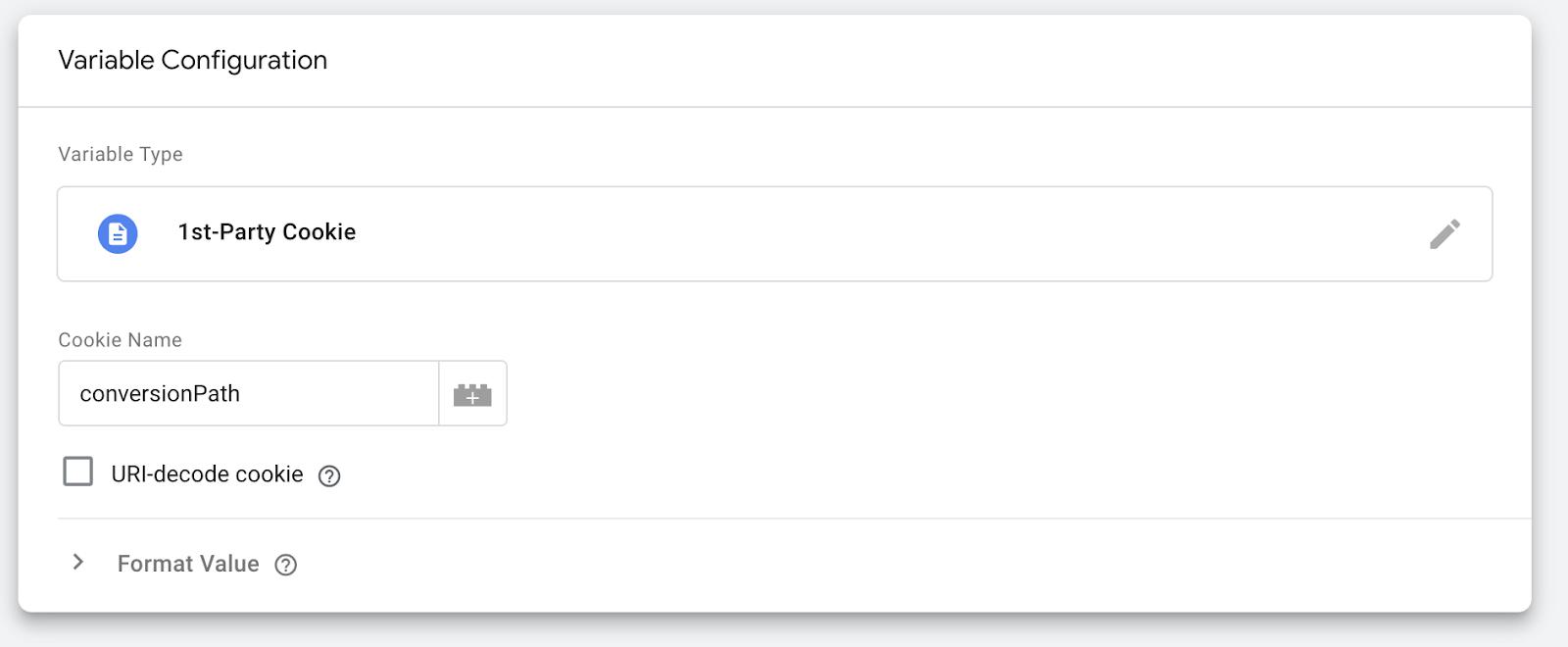 As in the double-counting instructions, create a new variable. But this time, call it funnelCookie and set the “Cookie Name” to conversionPath.
