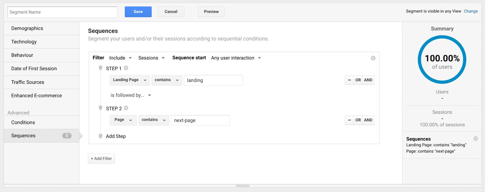 Universal Analytics Segment sequence creator