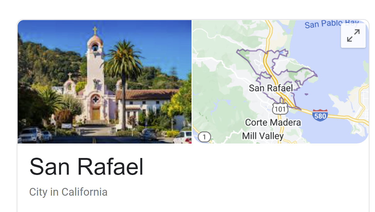 Next, look at where Google is placing the name of the city in its knowledge panel. That is considered the “centroid” of the city. Estimate the distance each of the two businesses is from the centroid. You can do so by looking up directions between the business address and the approximate address of the town name on the map.