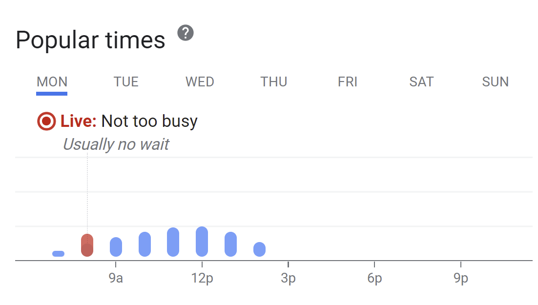 Finally, look at how your popular times compare with those of the competitor, and assess whether your hours of operation and patterns of foot traffic might need to be remodeled if you want to compete in the same time slots as the top competitor.