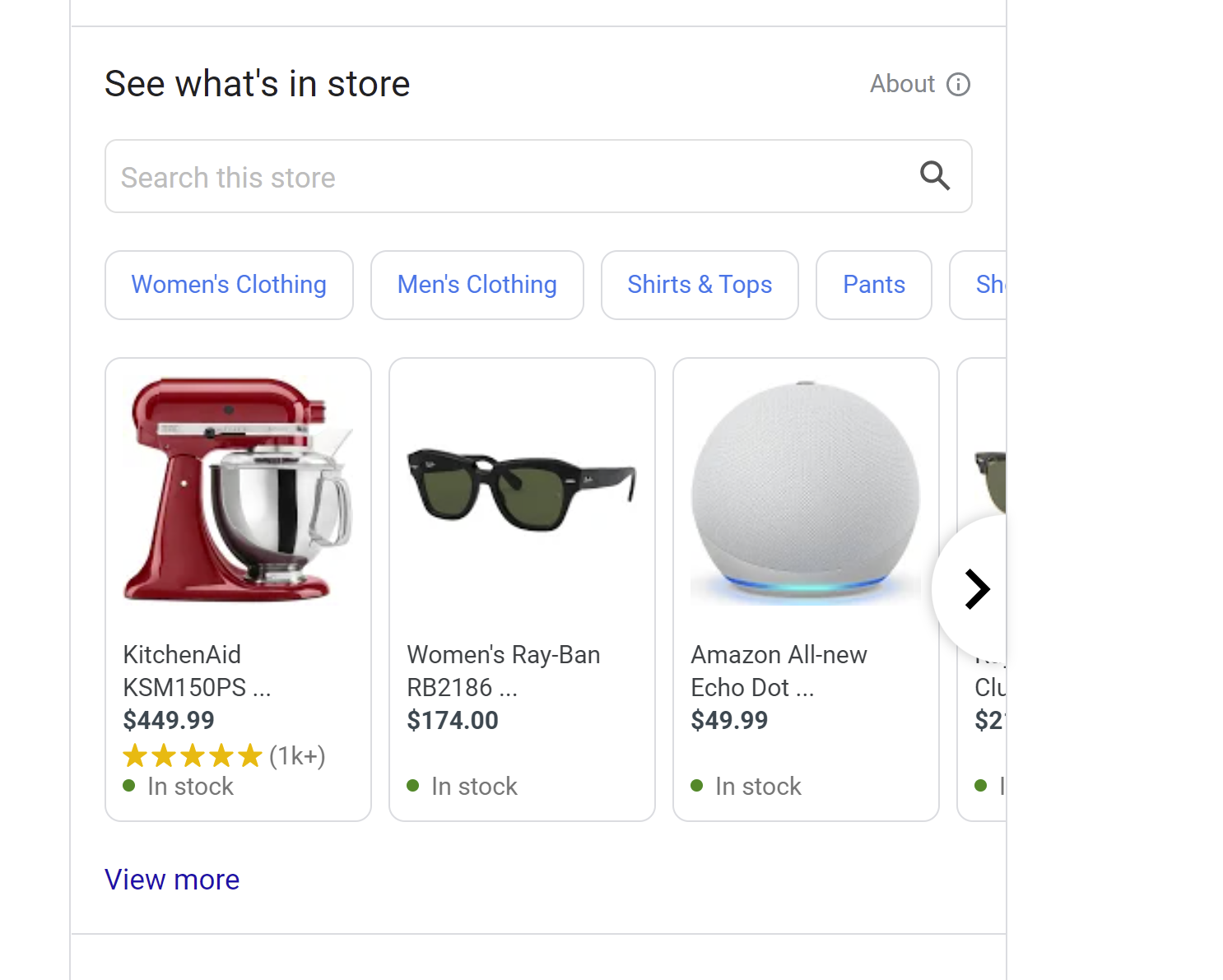 At a more advanced level in appropriate industries, Google Business Profiles and the Google Merchant Center are becoming increasingly linked. If your competitor has taken the steps to set up a Pointy feed of inventory and is enjoying the resultant “See What’s in Store” section on their listing, this is a big win for them which you may need to replicate if you’ve not yet fully “transactionalized” your listing.