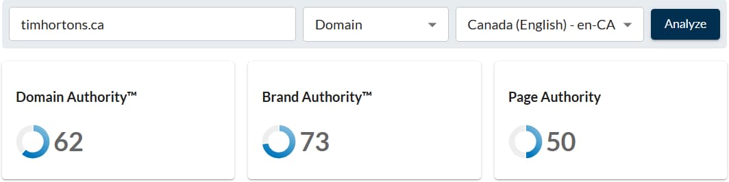 Large brands are not always constrained by borders, often achieving name recognition and influence across multiple global markets. Until recently, Brand Authority was limited to US search data. Like Domain Authority, we decided early on to use a single, non-localized score, but it has become clear that a single market doesn’t adequately represent global brands. As of late 2024, Brand Authority now reflects brand signals from four major English-speaking markets – the United States (US), the United Kingdom (UK), Canada (CA), and Australia (AU). This more accurately reflects multi-market brand awareness for most of our customers.