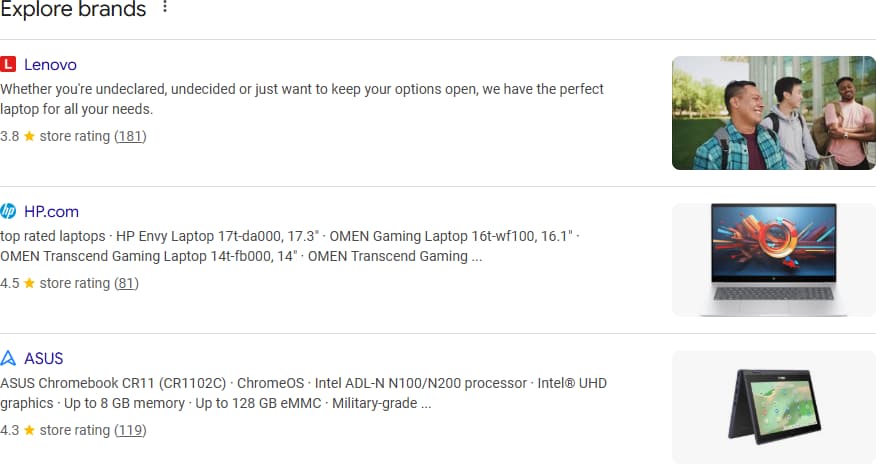 In the two years since we built Brand Authority, the power of brands in search has only become clearer. A search for “best laptops”, for example, returns three brand-focused features on page one, including “Explore brands”, which surfaces major brand sites.