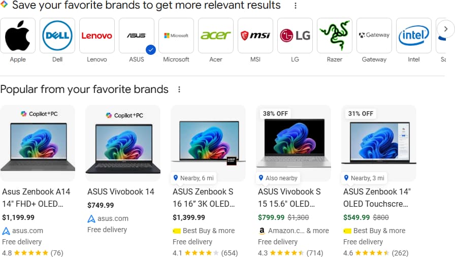Finally, you can save your favorite brands, which modifies shopping results to reflect your personal preferences, customizing the search experience.