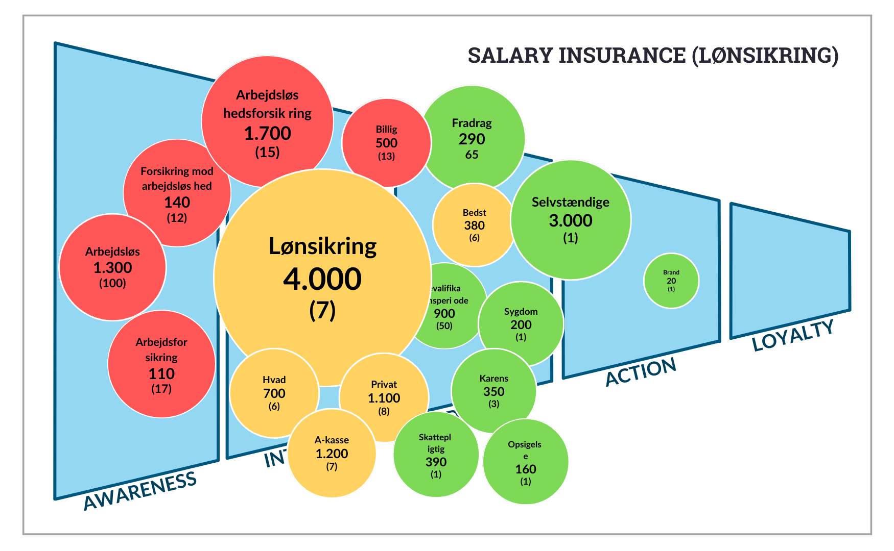 “Salary insurance” is a product offered by all the insurance industry players. If you lose your job, then with this insurance, you can cover 90% of your salary. This is a strategically important product for Købstædernes, and Google is a big touchpoint in their prospects’ customer journey.
