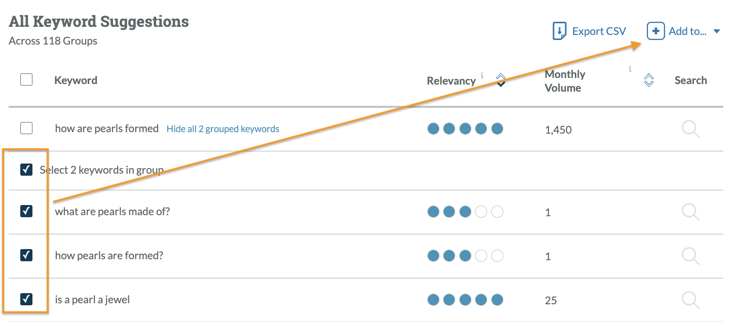 Pull relevant suggestions from a keyword tool
