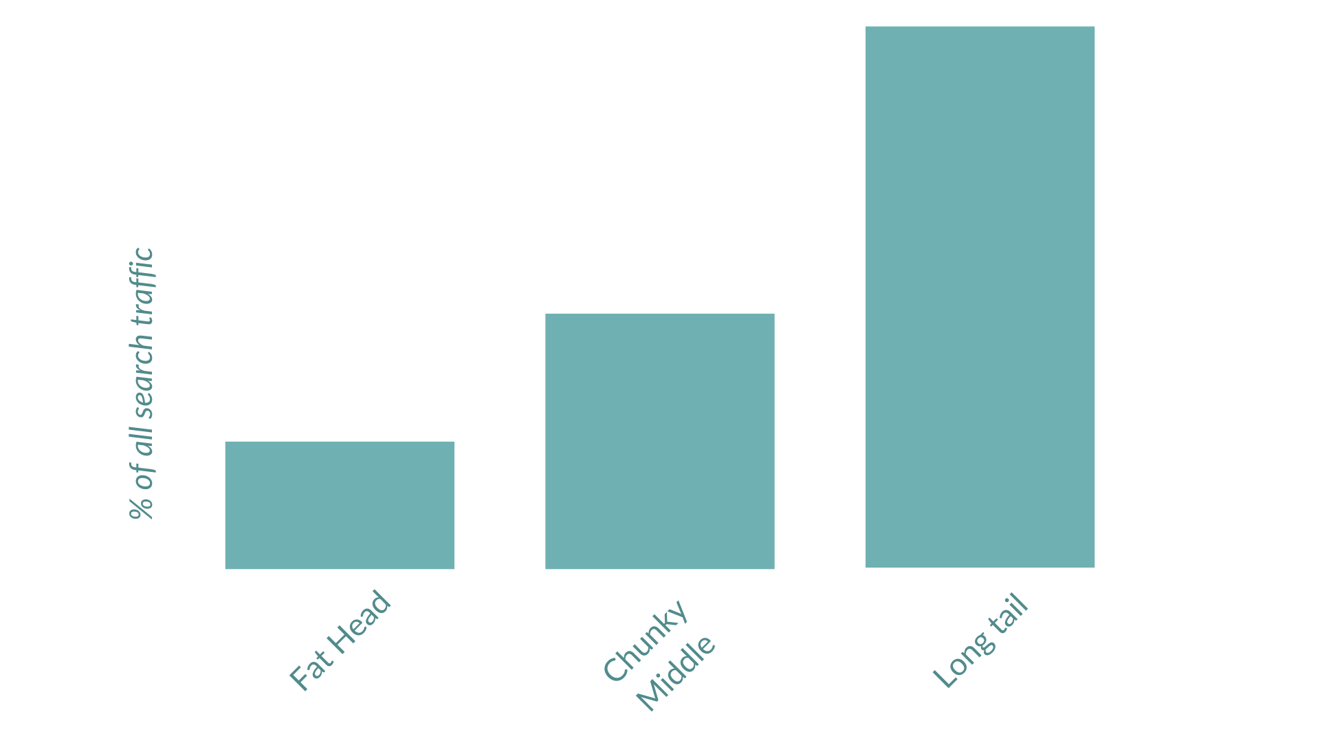 The Search Demand Curve illustrates that while “head” and “body” terms typically amass higher search volume, seeming appealing at first. The vastness of the “long tail” presents a more substantial opportunity and larger percentage of search traffic that shouldn’t be ignored. You can really see this illustrated when combined as a percentage of search traffic. While this graph contains no cats, it is still entirely illustrative. However the long tail of search isn’t slowing down anytime soon with voice search and AI integrations we can expect the vastness of the long tail to continue to grow.