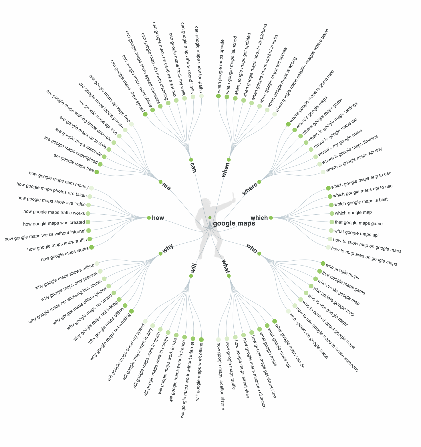 To avoid manually doing this, you can use Answer the Public, which uses this trick to create a mindmap of questions based on your keyword: