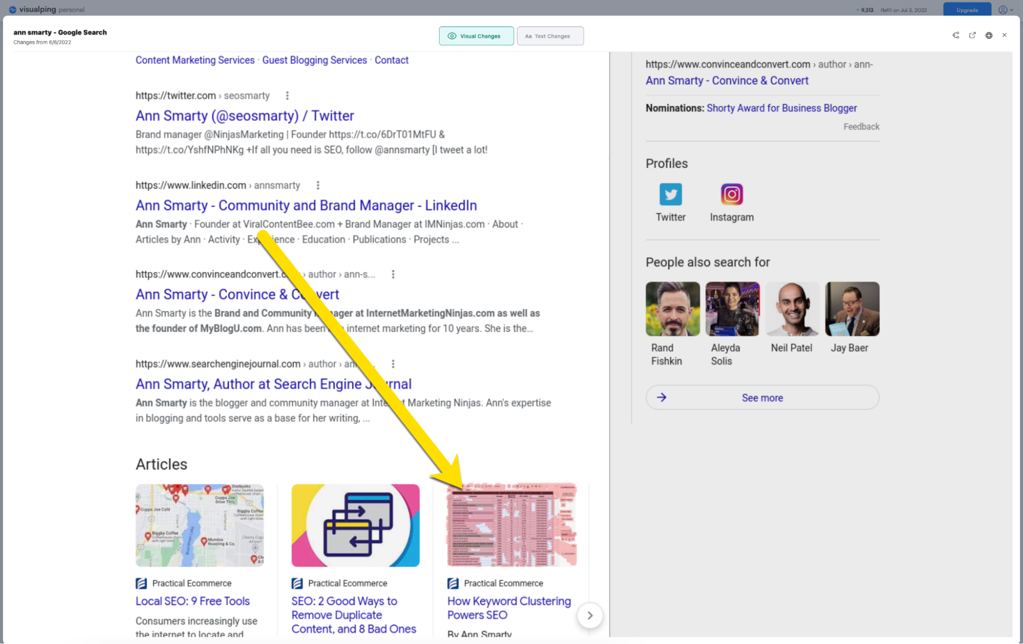 For your company’s key branded keywords, set up Visual Ping, a change-monitoring platform that will alert you once your branded SERPs add or remove anything. You will also be notified of any changes in your knowledge panel, new results, new images or videos pulled into your branded carousels, changes in local 3-pack, etc.:
