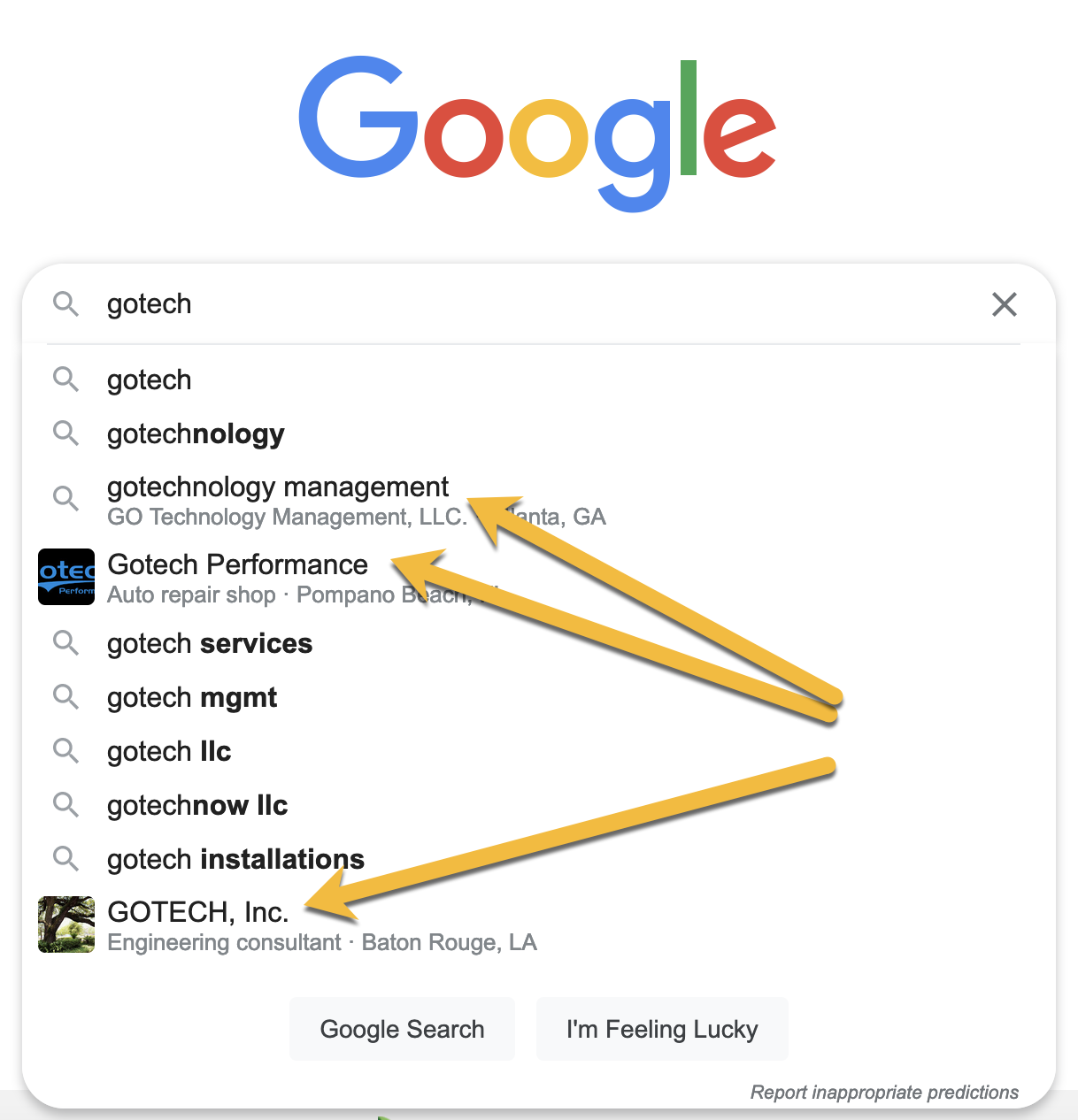 Google may prompt your customers to search for your name when they are trying to actually type your domain and get to your site. In this case, Google’s Autocomplete may distract and drive your actual customers away from your site, so you need to make sure that your branded search results will bring them back to your site.