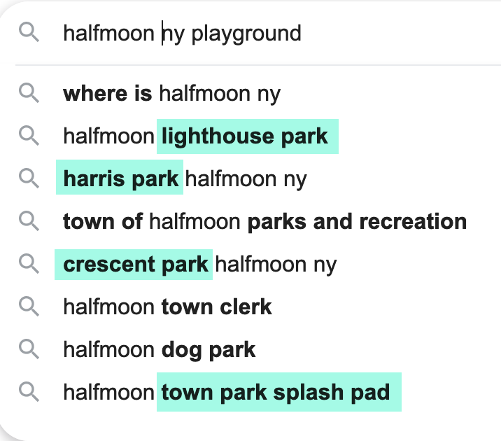Search refinements have many implications. For example, if you’re a local business, you should use Autocomplete to discover related towns and cities people in your area may be using to find similar businesses. These are all your target keywords: