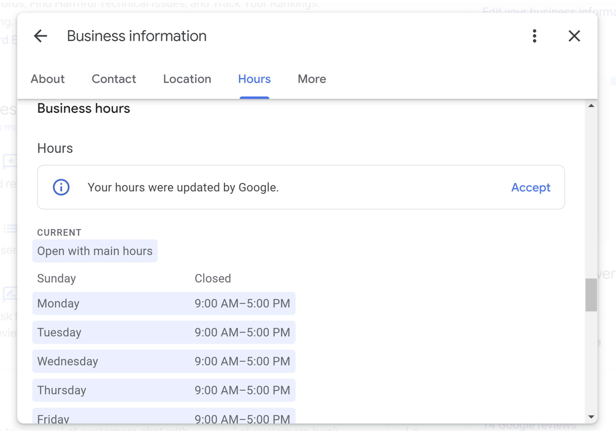 One of the key ways in which Google Business Profiles provide customer service is via the presence of accurate hours of operation. Be sure yours are kept up-to-date at all times, so no customer is inconvenienced by arriving at your premises to be greeted by a “closed” sign.