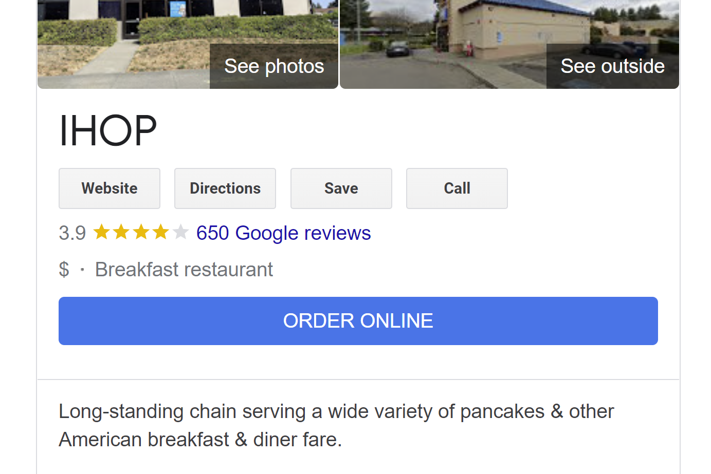 Some GBPs may feature an order online button . When clicked on, it brings up a list comprised of the brand as well as third-party services that facilitate taking digital payments in exchange for goods that can then be picked up or delivered.