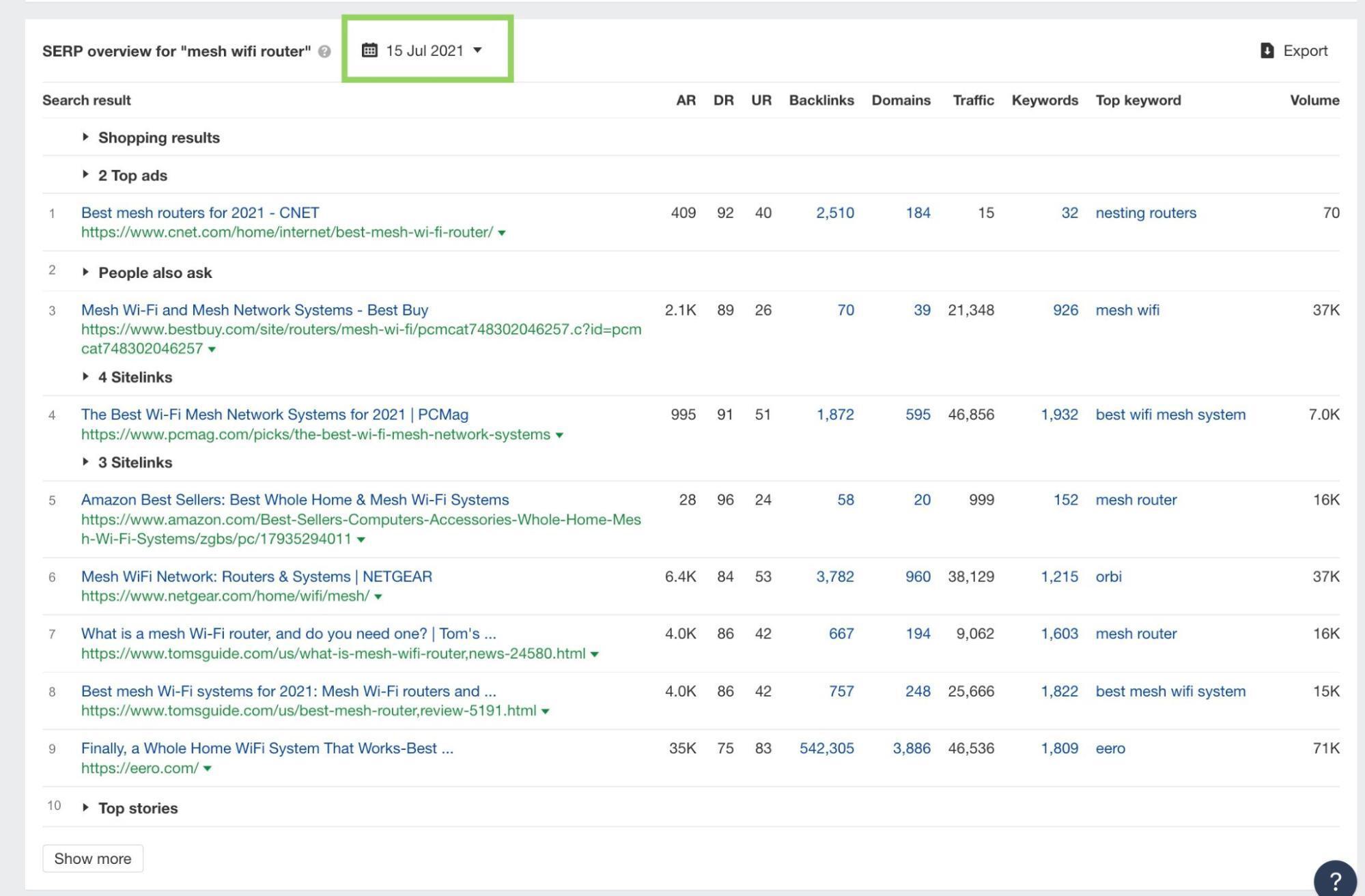 Here’s what the SERP for “mesh wifi router” looked like in 2021, based on Ahrefs data: