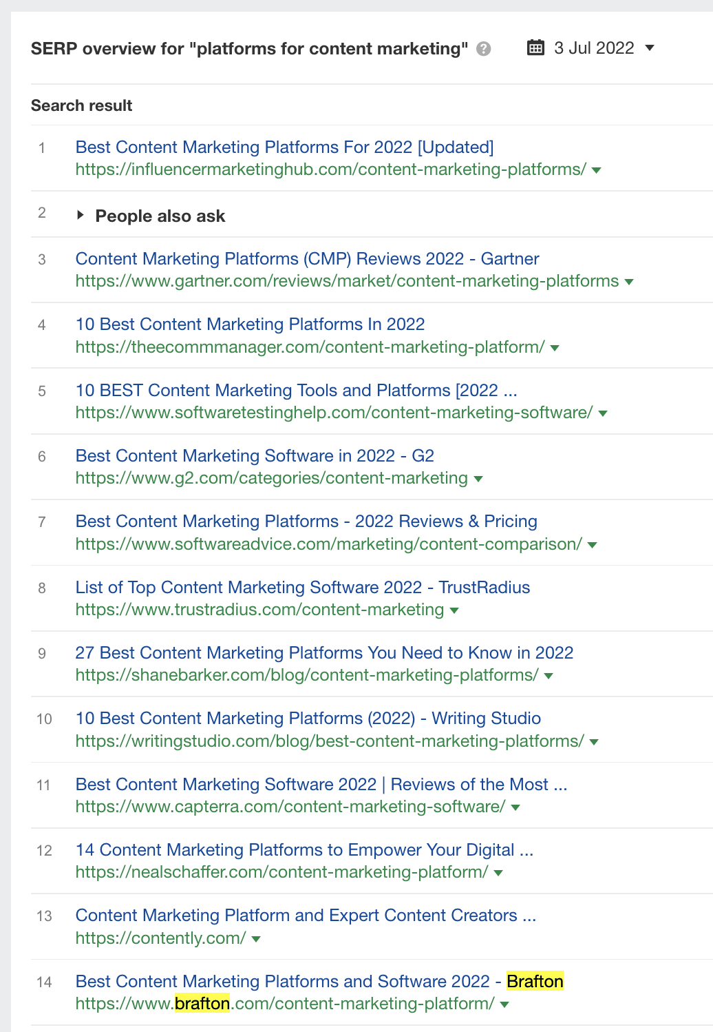 But we’re playing a long game. Our post about content marketing platforms went live a few months ago. It hasn’t landed on page one yet, but our hope is that we’ve created something that will build backlinks over time, and that we can update and re-promote year after year. And each time we update it, we’ll optimize the on-page copy to make sure it’s strongly positioned to succeed in search.