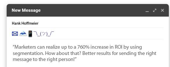 The days of “spray and pray” are over. Many marketers fail to use subscriber segmentation. Segmentation allows for better-targeted emails. According to the Data & Marketing Association (DMA), marketers can realize up to a 760% increase in ROI by using segmentation. How about that? Better results for sending the right message to the right person!