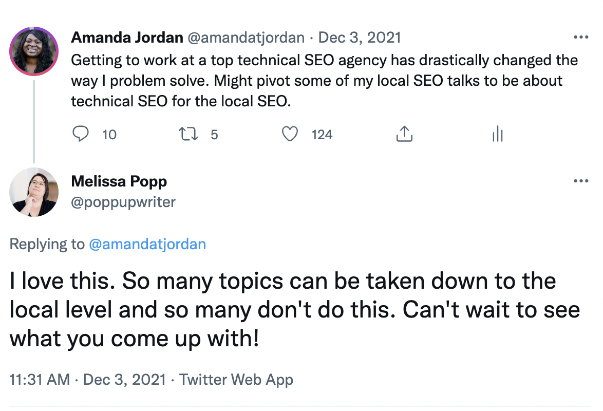 Last year, I pitched a series of technical SEO topics for local SEO on twitter and got lots of positive feedback.