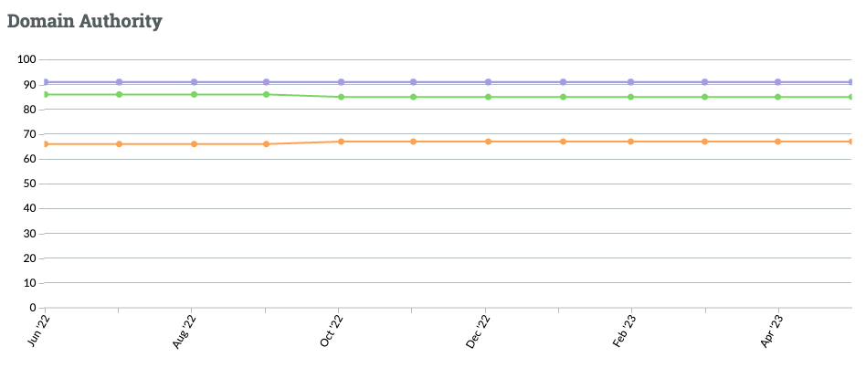 To make this a whole lot easier, head to the Moz Pro "Links" tab. Here you’ll find your historical link metrics, alongside those of your direct competitors.