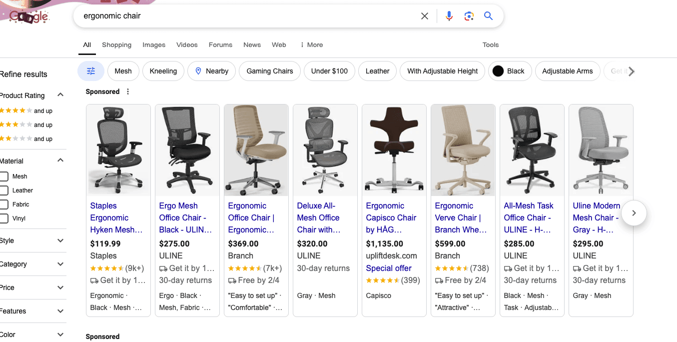 For example, if you sell office chairs, your seed keywords might include "ergonomic chair" or "comfortable office chair."