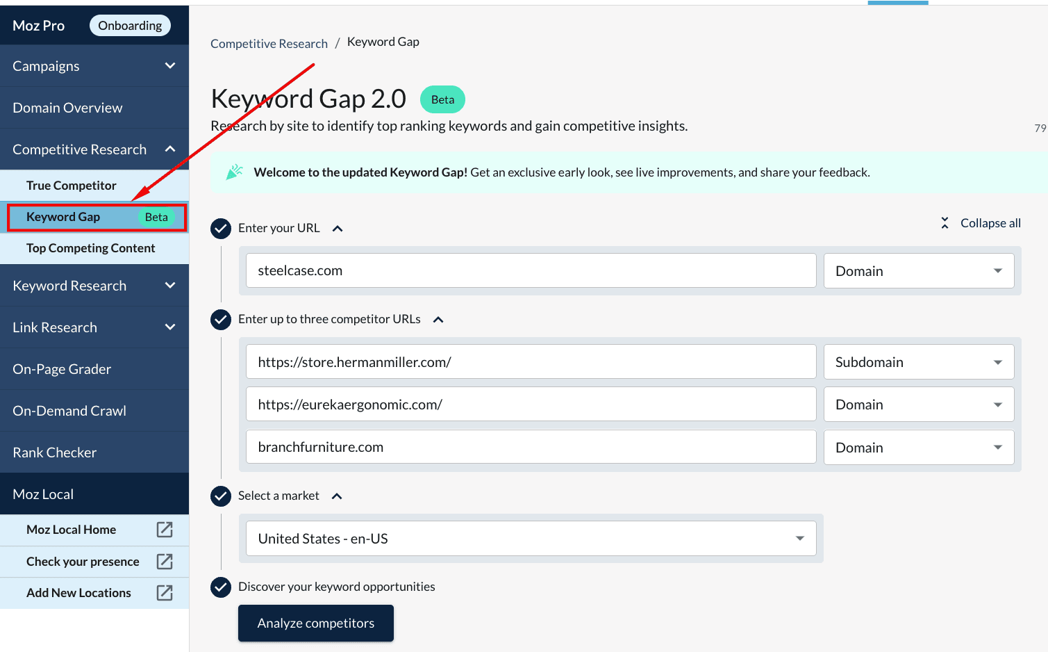 Find competitor keywords with Keyword Gap analysis