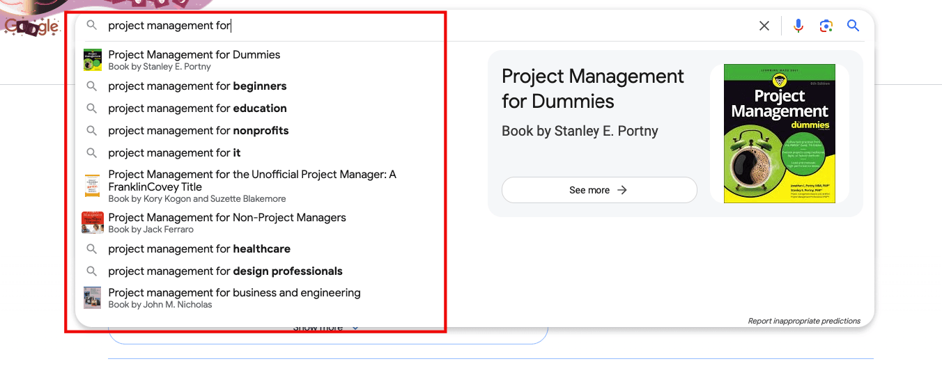 Google Autocomplete is a great way to find keyword ideas quickly. First, enter a seed keyword into the Google search bar. For better insights, I recommend adding specific modifiers like “for,” “best,” or “tool.”