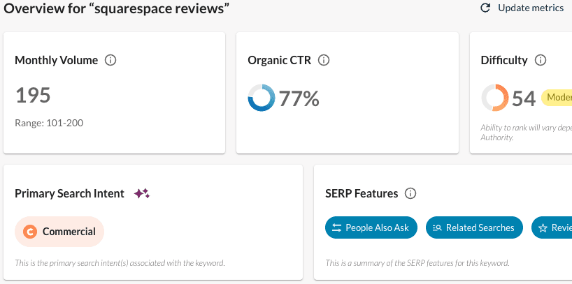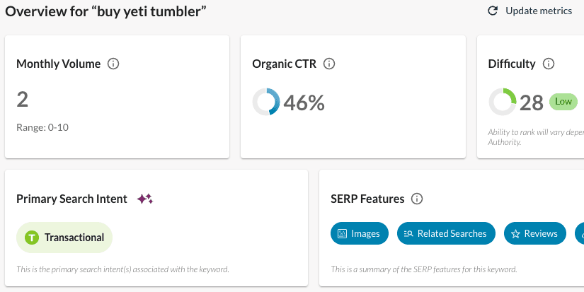 It’s also important to note that SERPs are volatile, so while a keyword may rank for one intent this month, that could change next month.