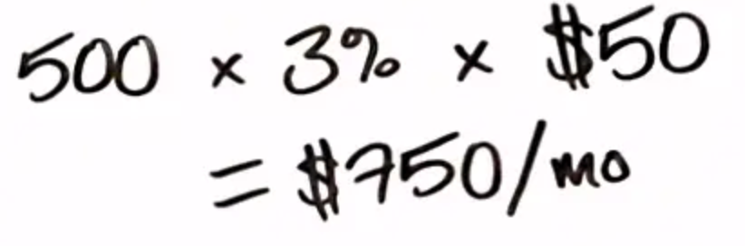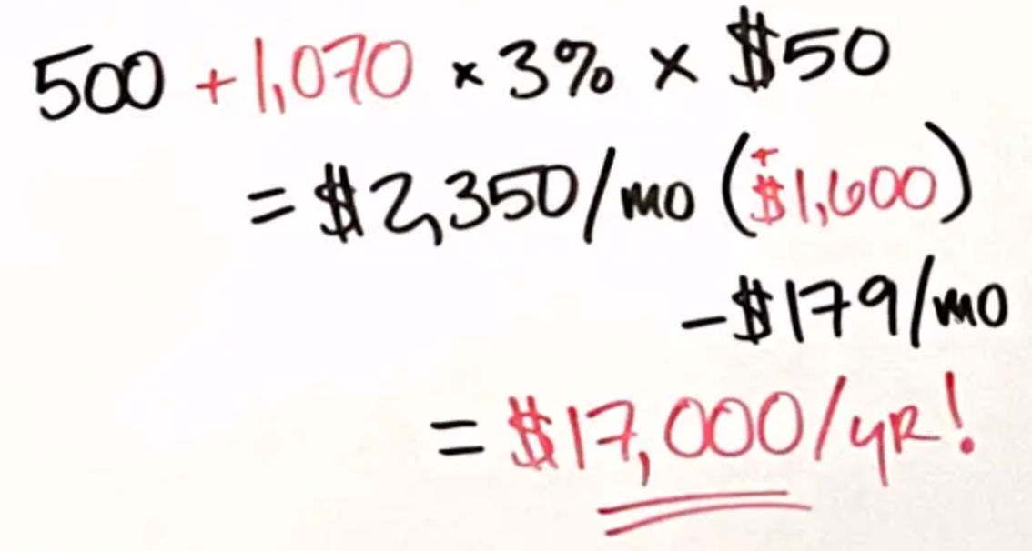 But, of course, we know that Chelsea's good work on that product description and user experience on the page could very well bump up that conversion rate too, which is great. But just to keep it simple, we'll leave that conversion rate constant. It still costs $50 to buy this widget. So now this page is bringing in $1,200 from organic search every month. That is currently a $450 increase per month over when this page was ranking number three. If we take out the cost of the tool that Chelsea is using, we end up with a profit per month of $270, and that works out to about $3,000 in profits per year.