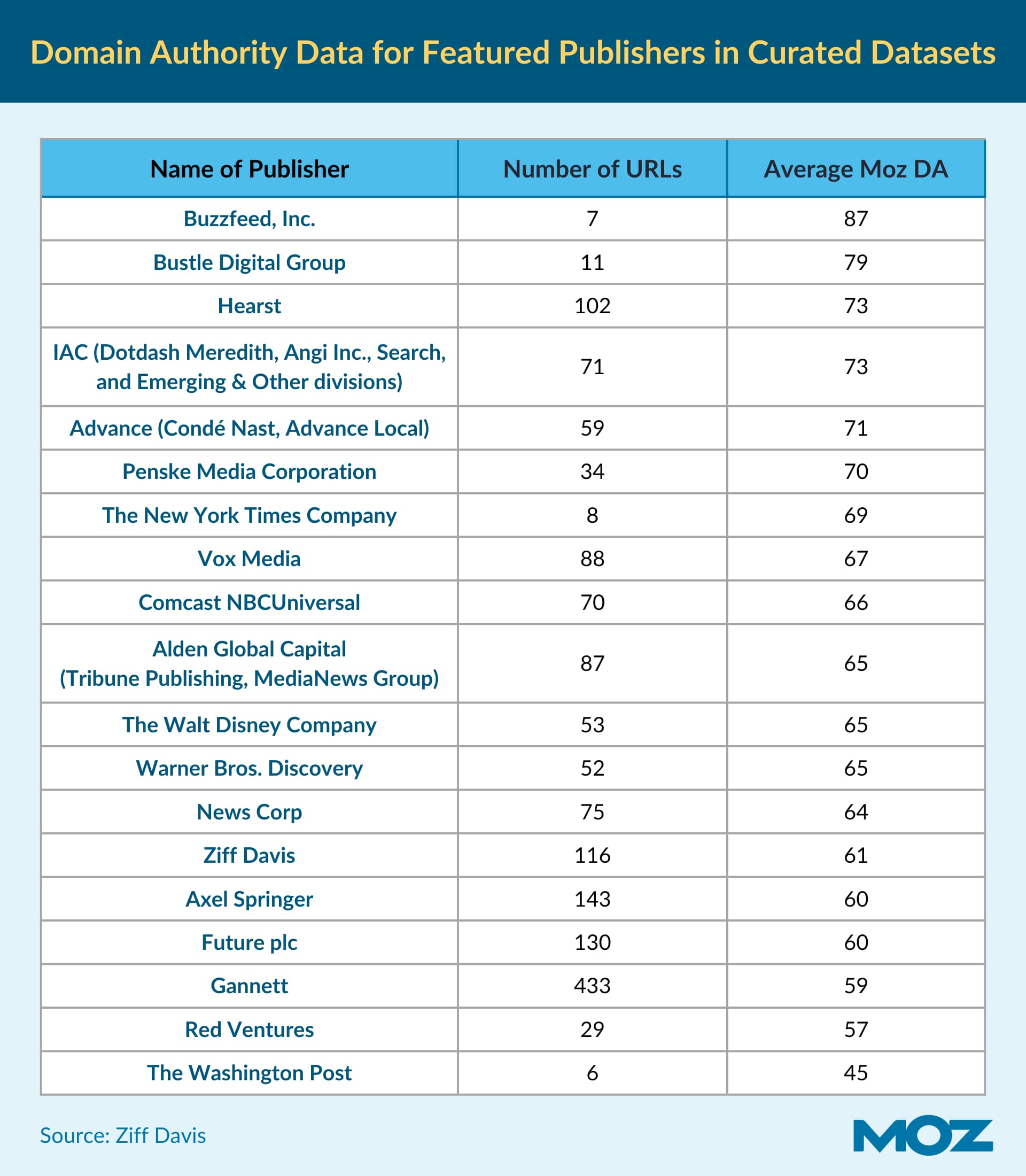 While not mentioned, most of these publishers have a higher Brand Authority than most