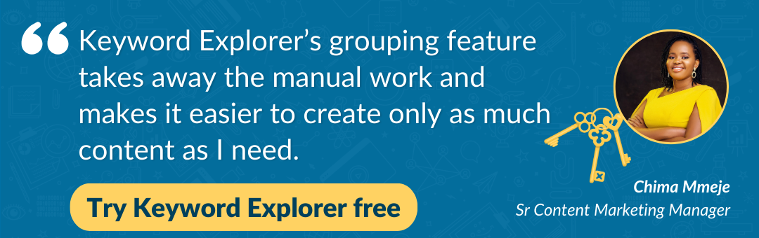 To easily group keyword suggestions head to Moz Pro > Keyword Research and enter a keyword or your website. Here you can select ‘low,’ ‘medium,’ or ‘high’ lexical similarity to group types of keywords together.
