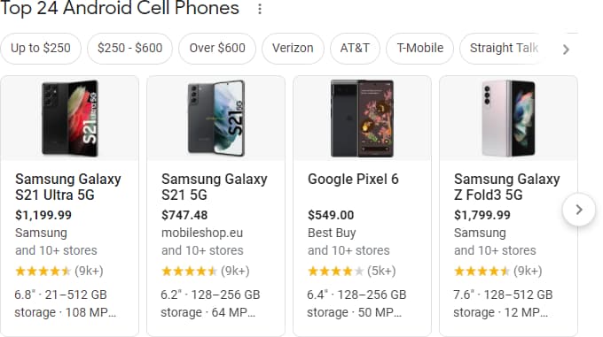 Google currently treats all of these as informational queries and returns organic content. At the same time, though, all of these questions reflect some interest in buying a new Android phone. Shifting up the funnel can help you stay focused on organic SEO and deliver the best results.